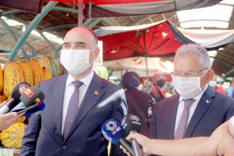 Kayseri Valisi Şehmus Günaydın, Büyükşehir Belediye Başkanı Memduh Büyükkılıç ve Kocasinan Belediye Başkanı Ahmet Çolakbayrakdar ile birlikte Yeni Mahalle Semt Pazarı'nda maske ve sosyal mesafe denetimlerinde bulundu. Vali Günaydın ve beraberindekiler; pazar esnafı ve alışveriş yapan vatandaşları maske, sosyal mesafe ve temizlik konusunda uyarılarda bulunurken kurallara uyanlara teşekkür etti. Basın mensuplarına açıklamalarda bulunan Vali Günaydın; kentteki vatandaşların önemli bir kısmının kurallara uyduğunu dile getirerek, "Geçen hafta başladığımız yoğun denetimlere devam ediyoruz. Bizler tabi ki hep ifade ediyoruz, yapılan denetimlerin amacı kesinlikle esnafımıza, vatandaşımıza ceza yazmak değil. Konunun gündemde kalması için, farkındalık oluşturmak için, konunun hassasiyetini devam ettirmek için korona virüs ile mücadelemizi kararlılıkla yürütebilmemiz için hayatımızın her alanında bu denetimlerimizi devam ettiriyoruz. Vatandaşlarımızdan özellikle şunu rica ediyoruz; korona virüs ile mücadelemizde en büyük silahımız olan maske, sosyal mesafe ve temizlik kurallarını sıkı bir şekilde uygulayalım. Hayatımızın her aşamasında buna dikkat edelim. Memnuniyetle ifade etmek istiyorum ki, Kayseri'de vatandaşlarımızın çok çok önemli bir kısmı bu kurallara riayet ediyor. Bizim amacımız toplumumuzun tamamının bu kurallara uymasını sağlamak. Bu mücadeleyi veriyoruz" dedi.