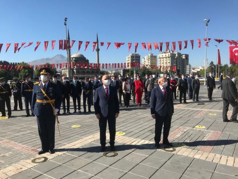 Cumhuriyet Meydanında saygı duruşu ve İstiklal Marşı okunmasının ardından yapılan çelenk koyma törenine Kayseri Valisi Şehmus Günaydın, Kayseri Büyükşehir Belediye Başkanı Memduh Büyükkılıç, Garnizon Komutanı Tuğgeneral Aziz Adalı, İYİ Parti Kayseri Milletvekili Dursun Ataş, siyasi parti temsilcileri, protokol üyeleri ve vatandaşlar katıldı. Çelenk koyma töreninin ardından Kartal Şehitliği’nde dua edilerek, protokol tarafından şehit mezarlarına karanfil bırakıldı.