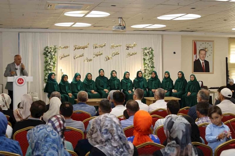 Yahyalı Hacı Ali Emine Bayansar Kız Hafızlık Kur’an Kursu’nda eğitimlerini tamamlayan 12 öğrenci; hafızlıklarını tamamlayarak belge almaya hak kazandı.
