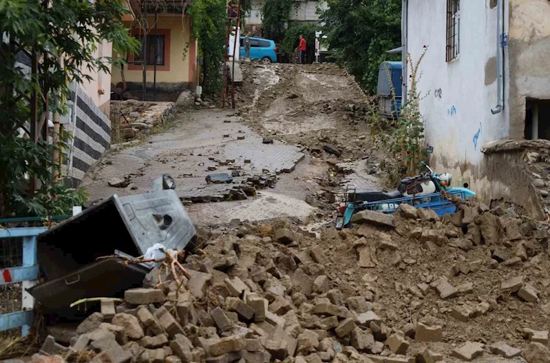 Kayseri’nin Yahyalı ilçesinde etkili olan sağanak sonrası oluşan sel yağış hayatı olumsuz etkiledi.