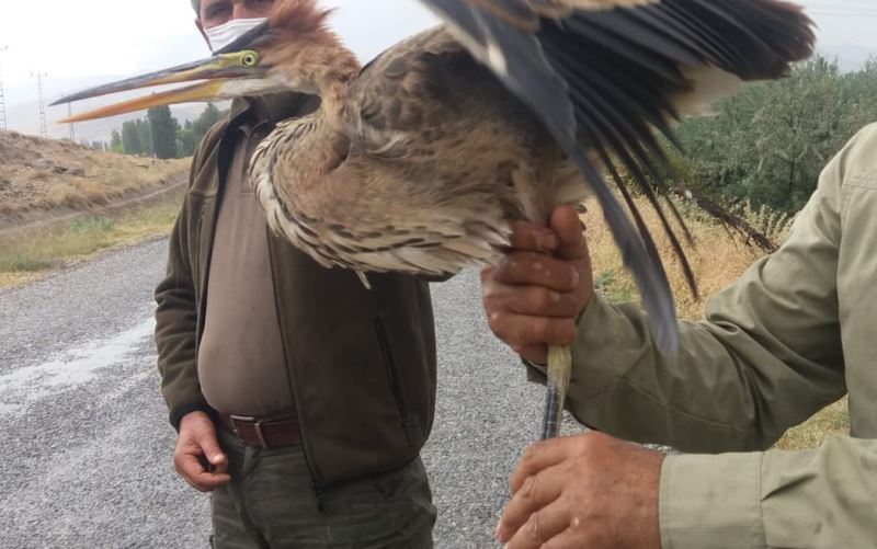 Kayseri’nin Yahyalı ilçesinde duyarlı bir vatandaş tarafından bulunan yaralı erguvani balıkçıl kuşu tedavi altına alındı.