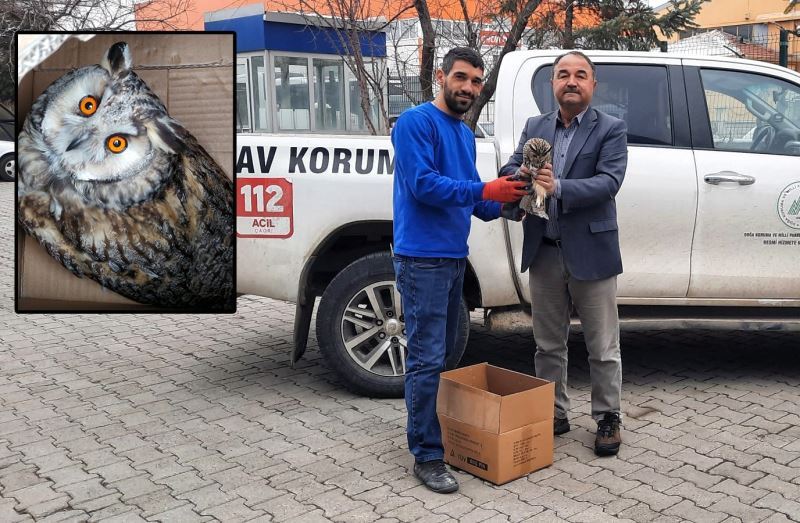 Kayseri Organize Sanayi Bölgesinde duyarlı bir vatandaş tarafından yaralı şekilde bulunan kulaklı orman baykuşu, gerekli bakım ve tedavisi için Kayseri Doğa Koruma ve Milli Parklar Müdürlüğü ekiplerince teslim alındı.