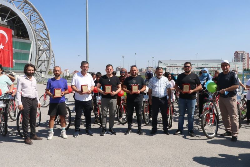 Yetim çocuklar plaket töreni akabinde Kadir Has Stadyumu önünden başlayan bisiklet turunda pedal çevirdiler.