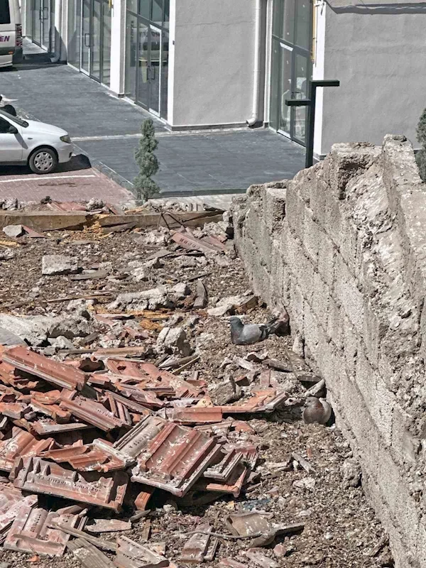 Kayseri’nin Talas ilçesinde yıkımı yapılan binanın çatı katına yuva yapan güvercinin yumurtaları özenle taşındı.