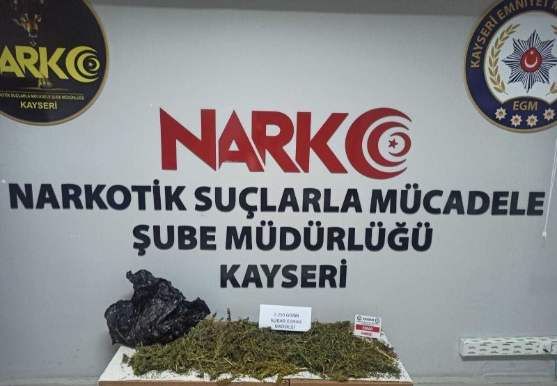 Kayseri İl Emniyet Müdürlüğü Narkotik Suçlarla Mücadele Şube Müdürlüğü ve İstihbarat Şube Müdürlüğü ekipleri, H.B.’nin batı illerinden Kayseri’ye yolcu otobüsü ile yüklü miktarda uyuşturucu madde getireceği bilgisi üzerine harekete geçti. H.B.’nin bindiği otobüsü tespit eden ekipler, Ankara yol uygulamasında durdurdukları otobüs içerisinde şüpheli şahsı gözaltına aldı. Şahsın valizinde yapılan aramada ise 2 kilo 250 gram kubar esrar maddesi ele geçirdi. Maddeye el konulurken, H.B.’de gözaltına alındı.