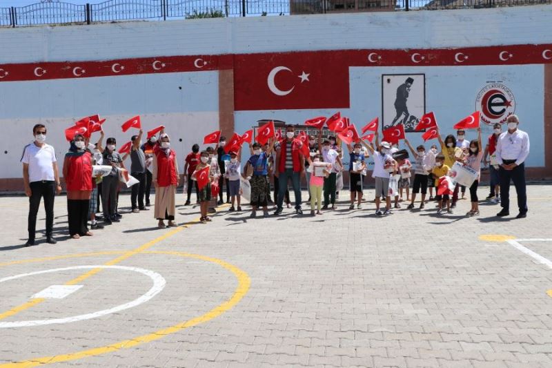 Hayırseverlerden alınan desteklerle çocuklara bayramlık kıyafetler, oyuncaklar, kırtasiye malzemeleri gibi malzemeler dağıtıldı.