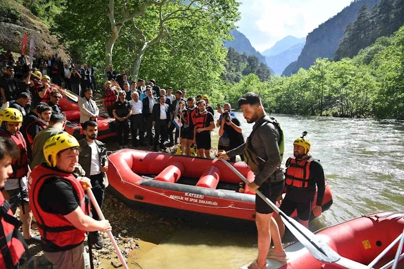 Kayseri Büyükşehir Belediye Başkanı Dr. Memduh Büyükkılıç, Kayseri Valisi Gökmen Çiçek ile birlikte Yahyalı ilçesine kazandırılan 8 kilometrelik Rafting ve Kano Faaliyetleri Parkuru’nda ilk yarışın startını verdi.