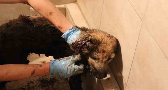 Kayseri’nin İncesu ilçesinde yapıştıkları ziftten kurtarılan yavru köpekleri veterinerler hayata döndürmek için yoğun çaba sarf ediyor.